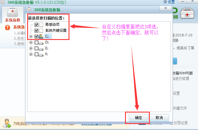 4.点击“急救箱右上角--《设置》”按钮,然后按下图说明操作。 | |